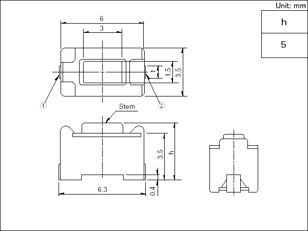 按鈕高度:h=5mm